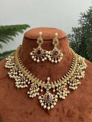Elevate your traditional collection with the Classic Gutta Pusalu set, featuring intricately designed gutta pusalu beads paired with matching earrings. This ensemble showcases expert craftsmanship, blending timeless elegance with cultural heritage. Perfect for formal occasions, it offers a refined look that complements both ethnic and contemporary attire.