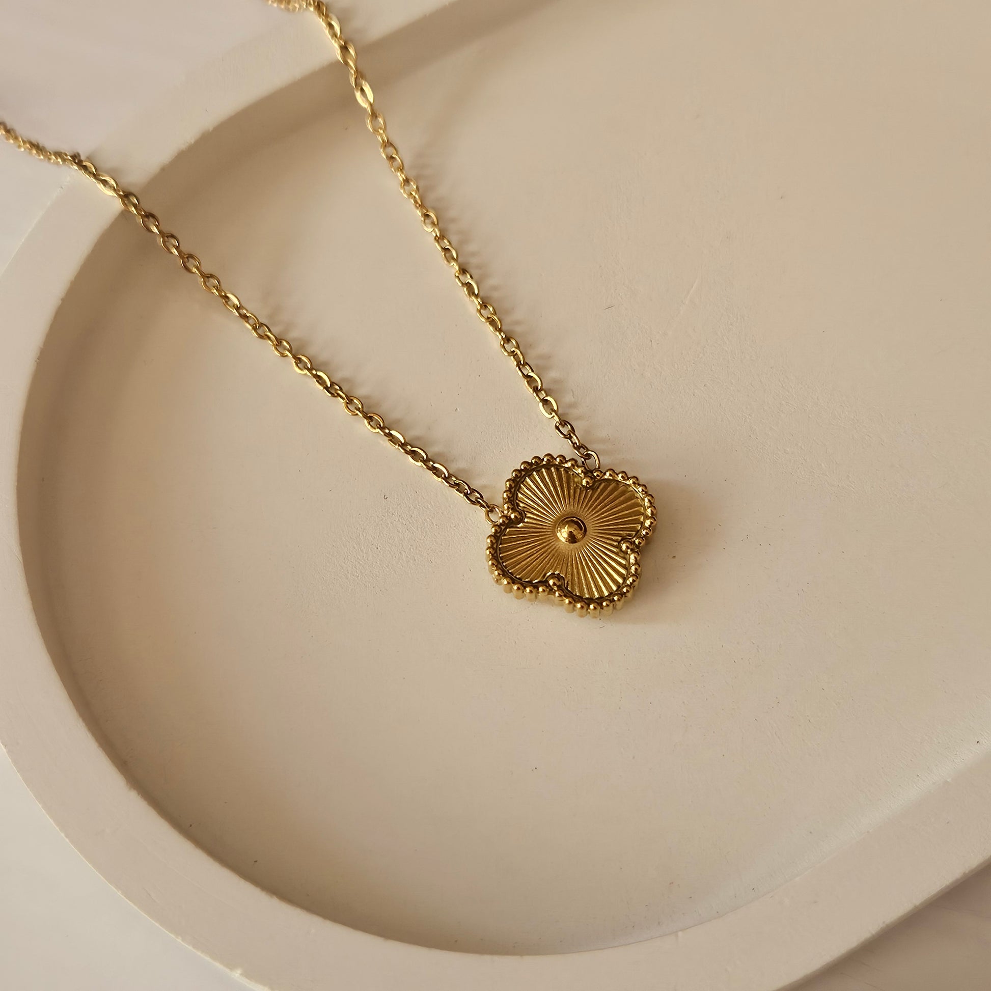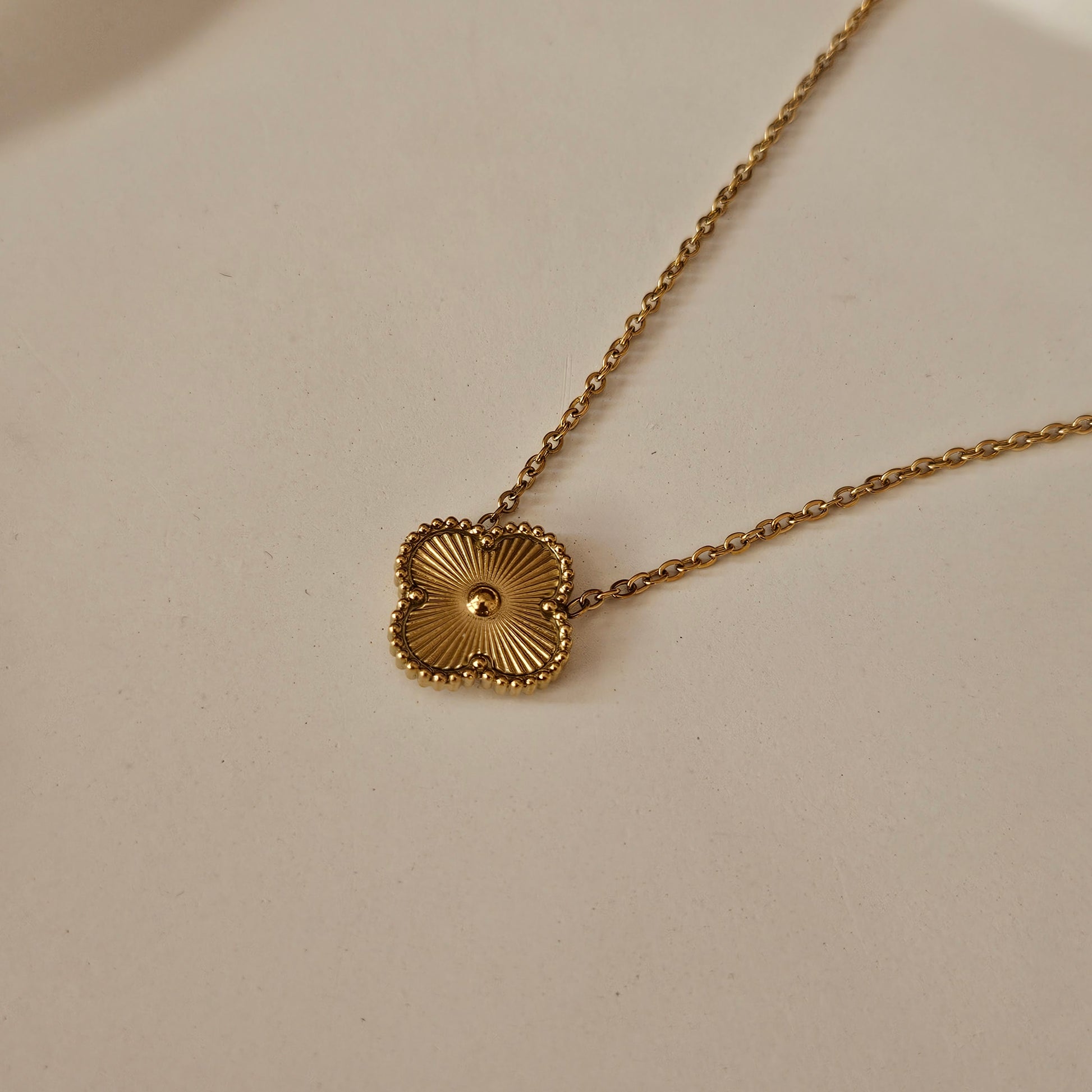 Infuse your style with golden luck with the Clover Gold Necklace. This charming neckchain features a symbolic design in a radiant gold finish, perfect for adding a touch of opulence. Crafted with anti-tarnish properties for lasting gleam.