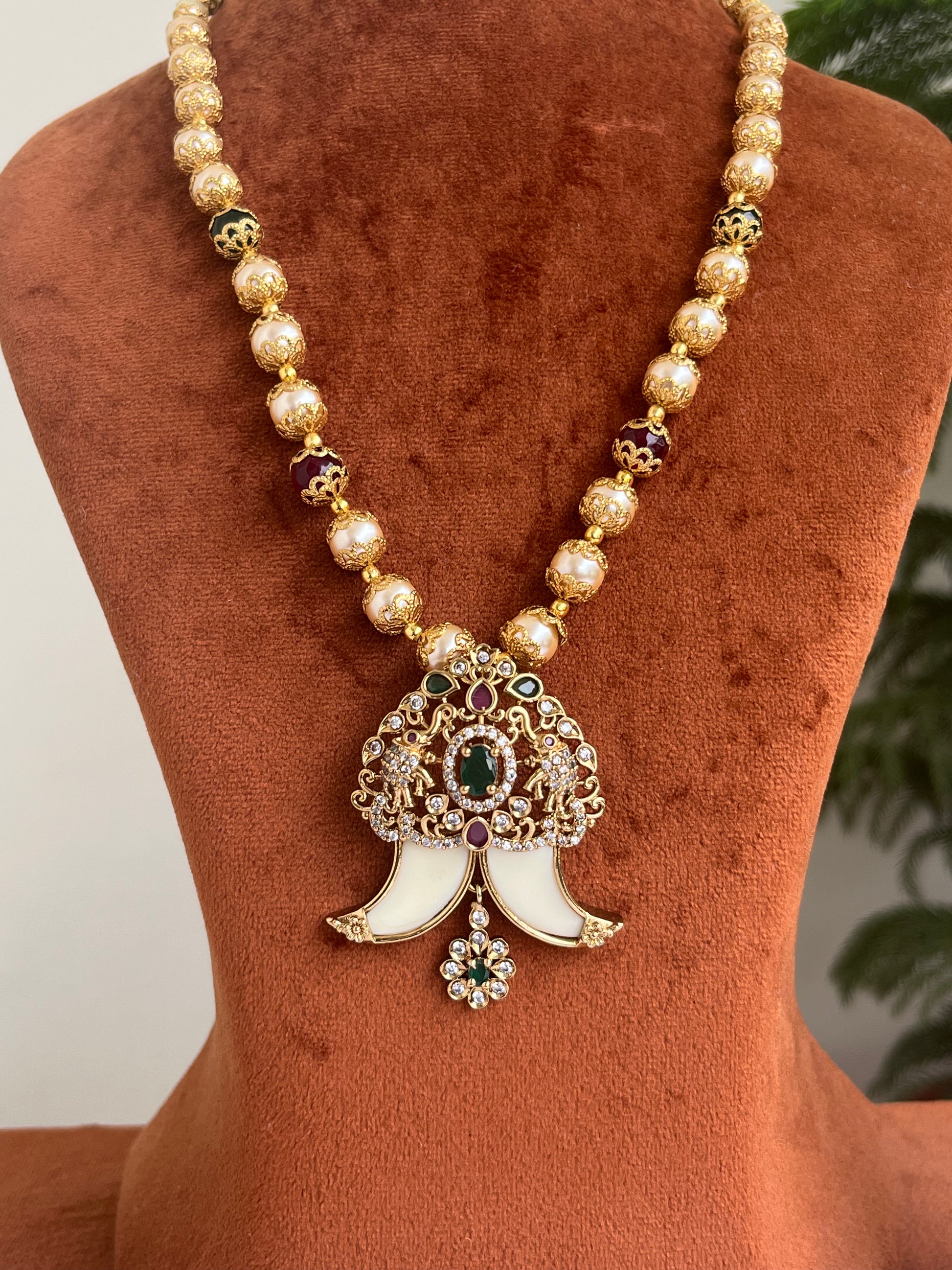 Elephant Motif Tiger Nail Pendant Haram with Pearls – Royal Traditional Jewellery