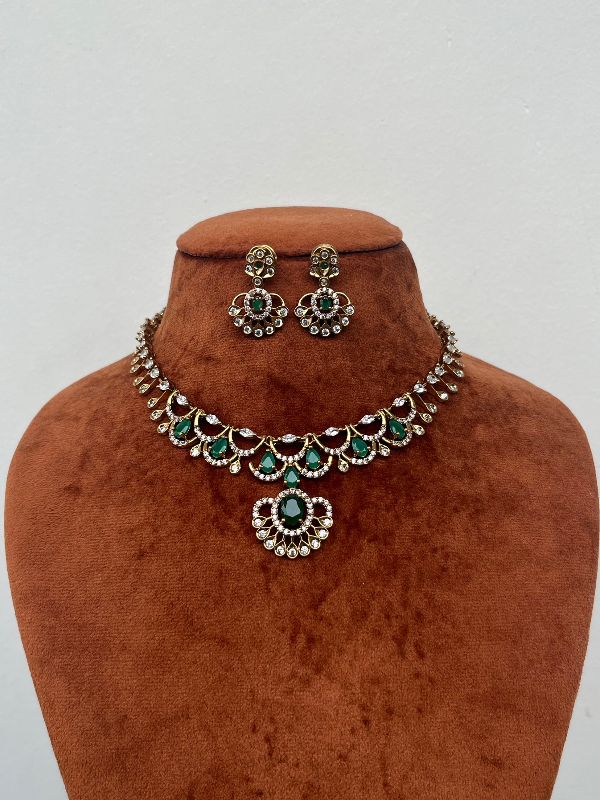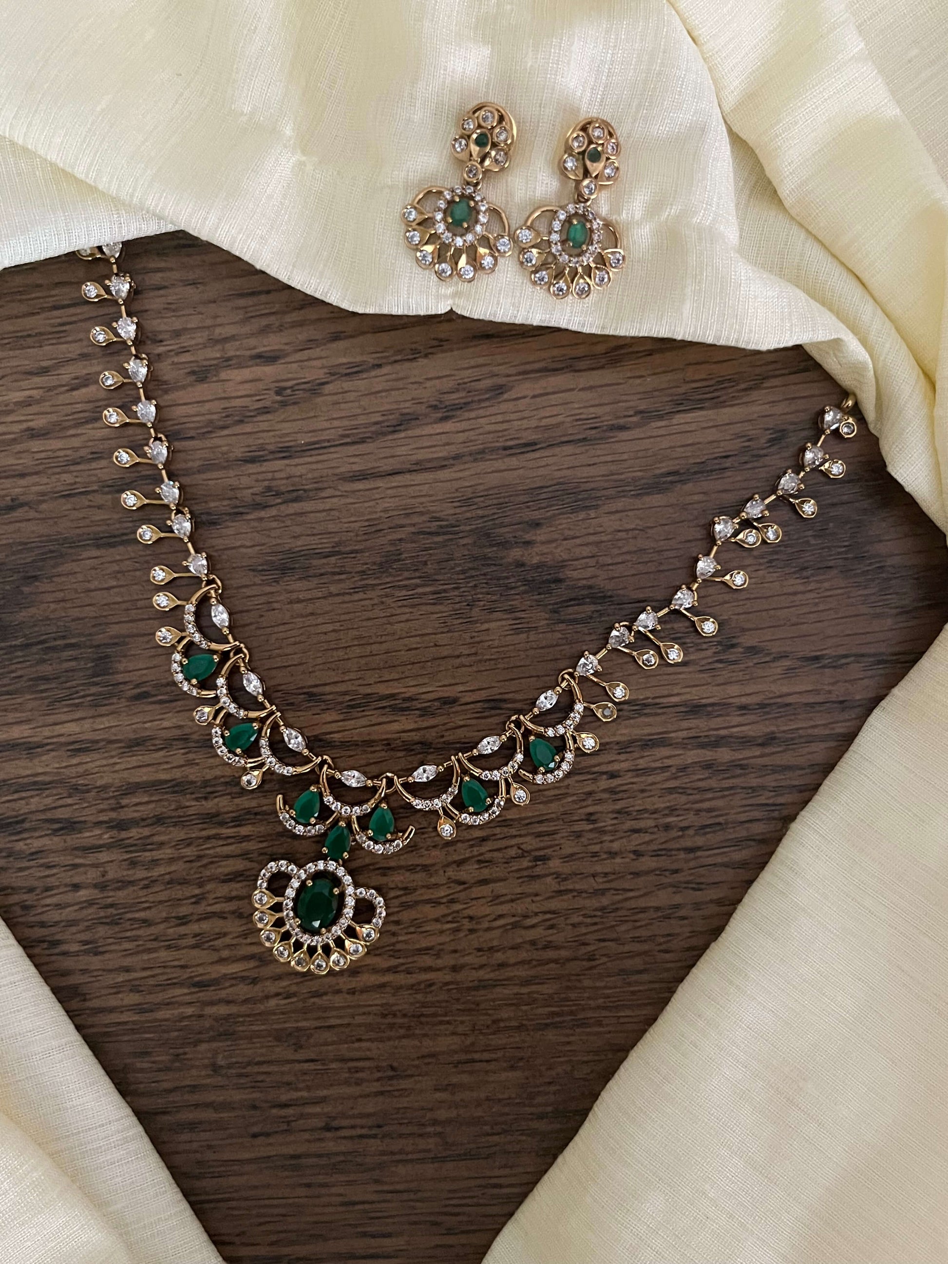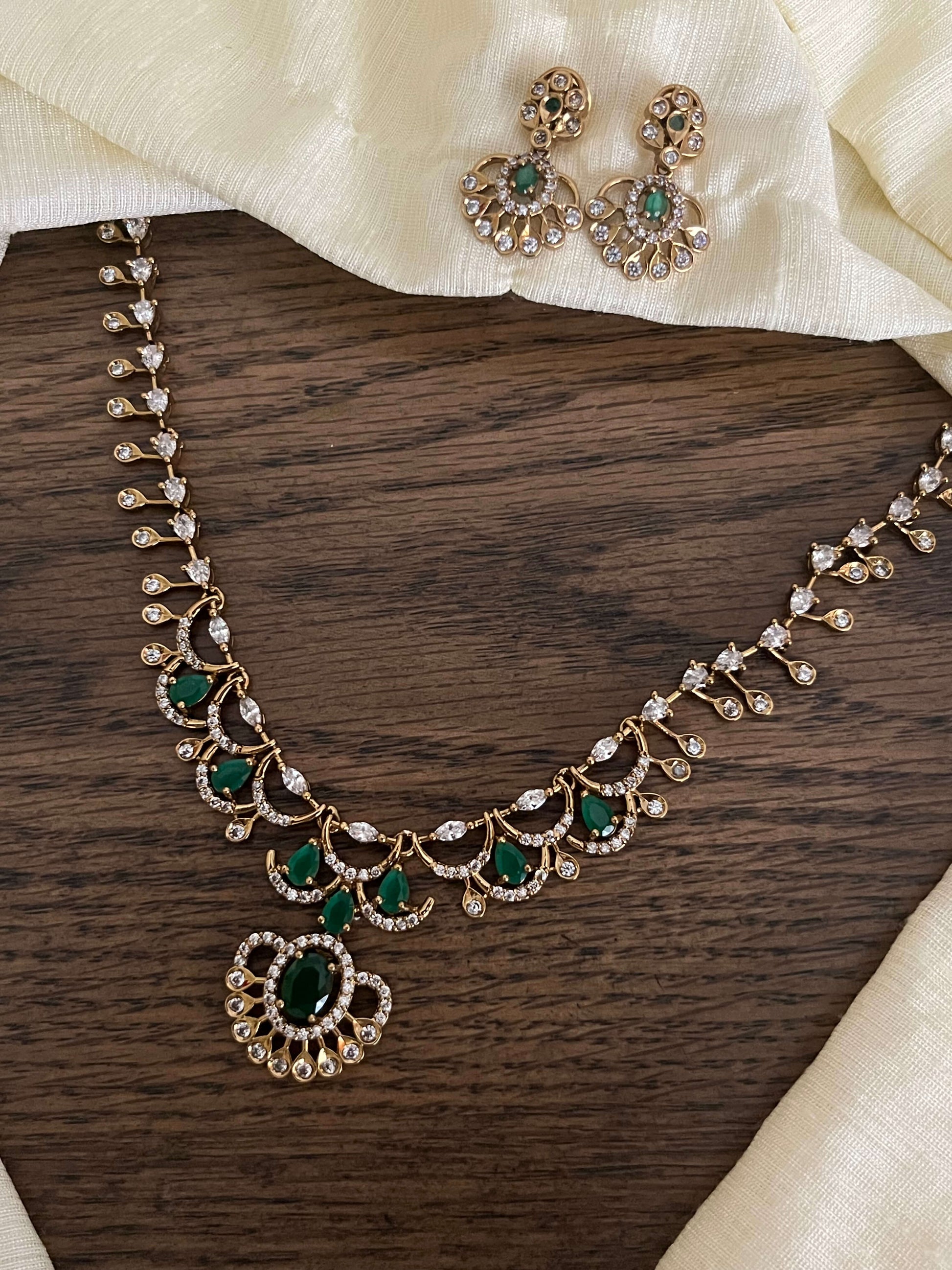 Floral Motifs Sleek Drops AD Necklace Set with Earrings – Lightweight & Elegant