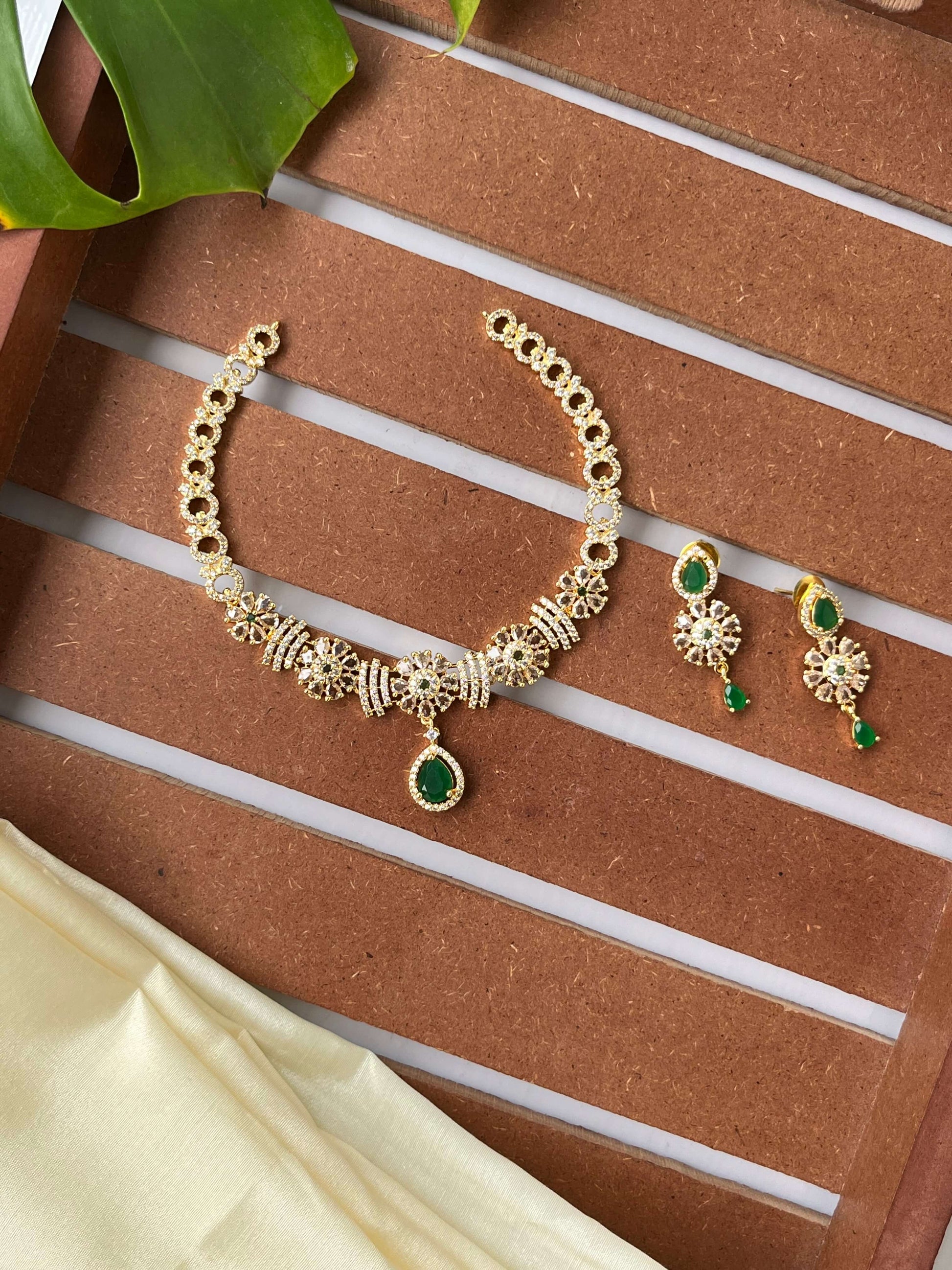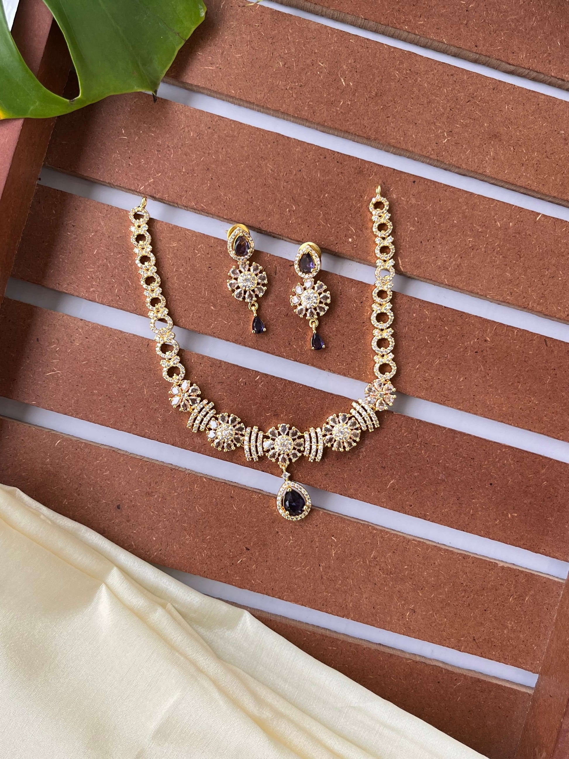 Golden Polish Floral Motif Necklace Set – Available in Purple & Emerald Green Variants