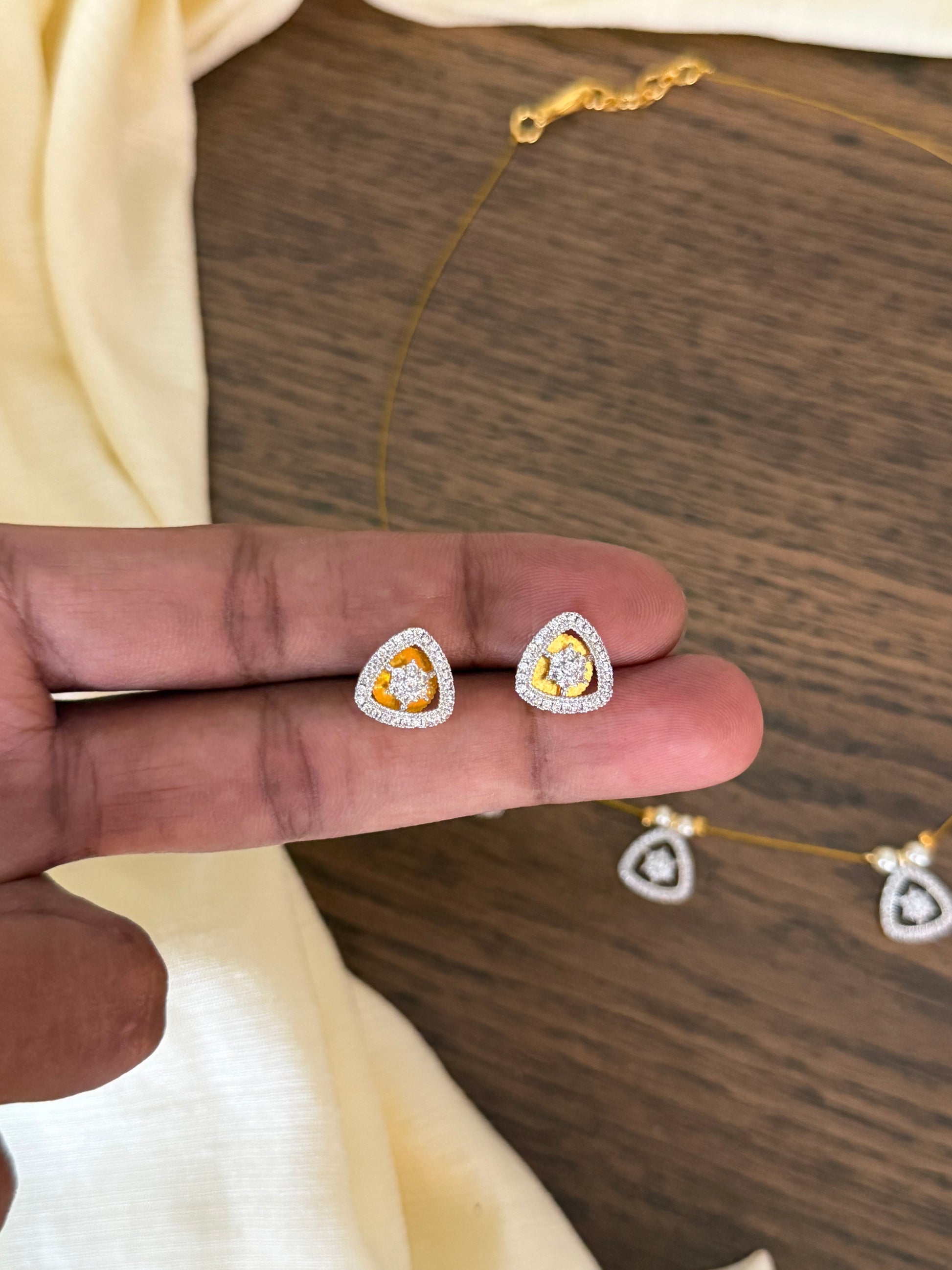 Invisible Chain Necklace with triangular Charms & Matching Studs