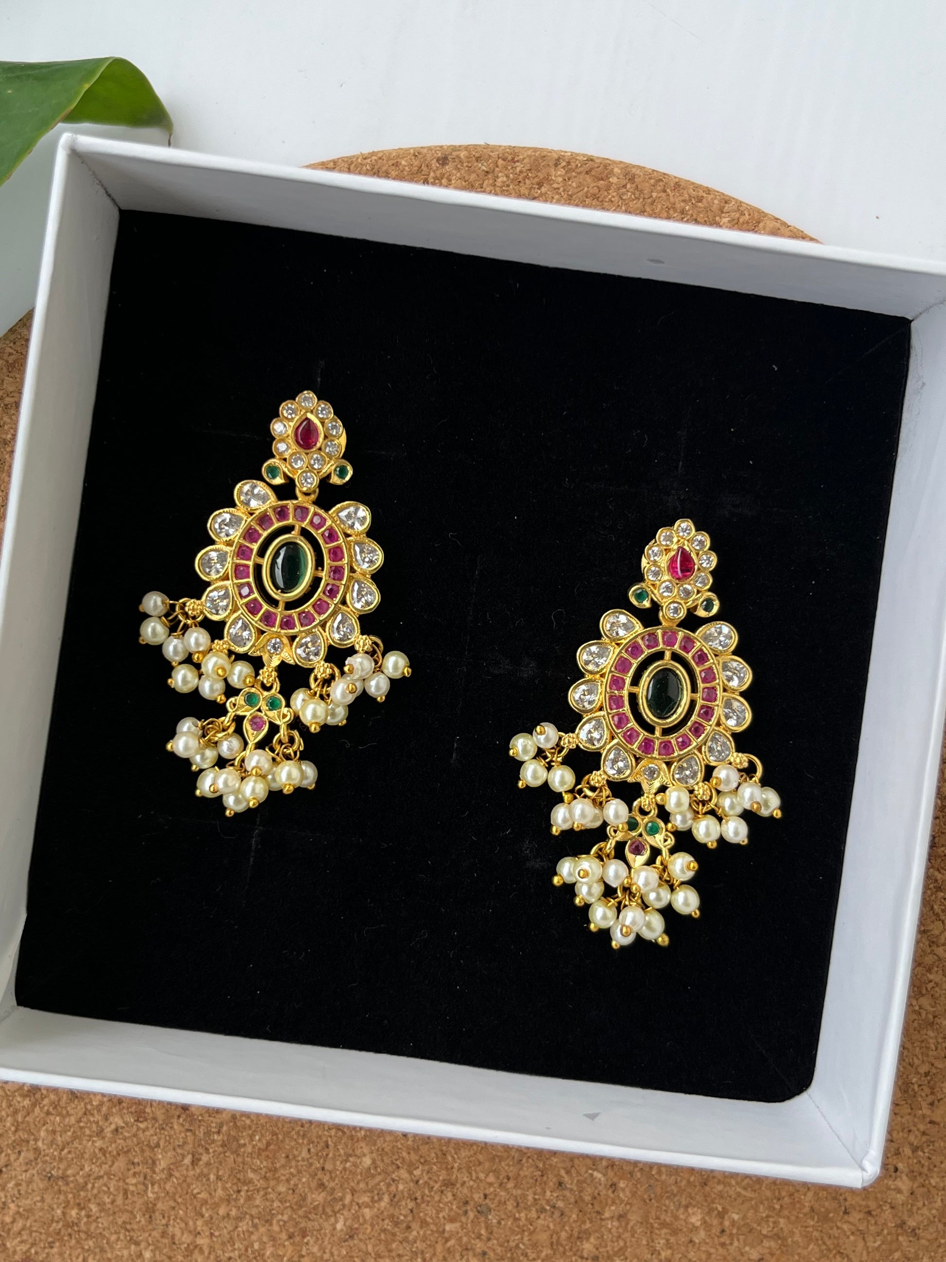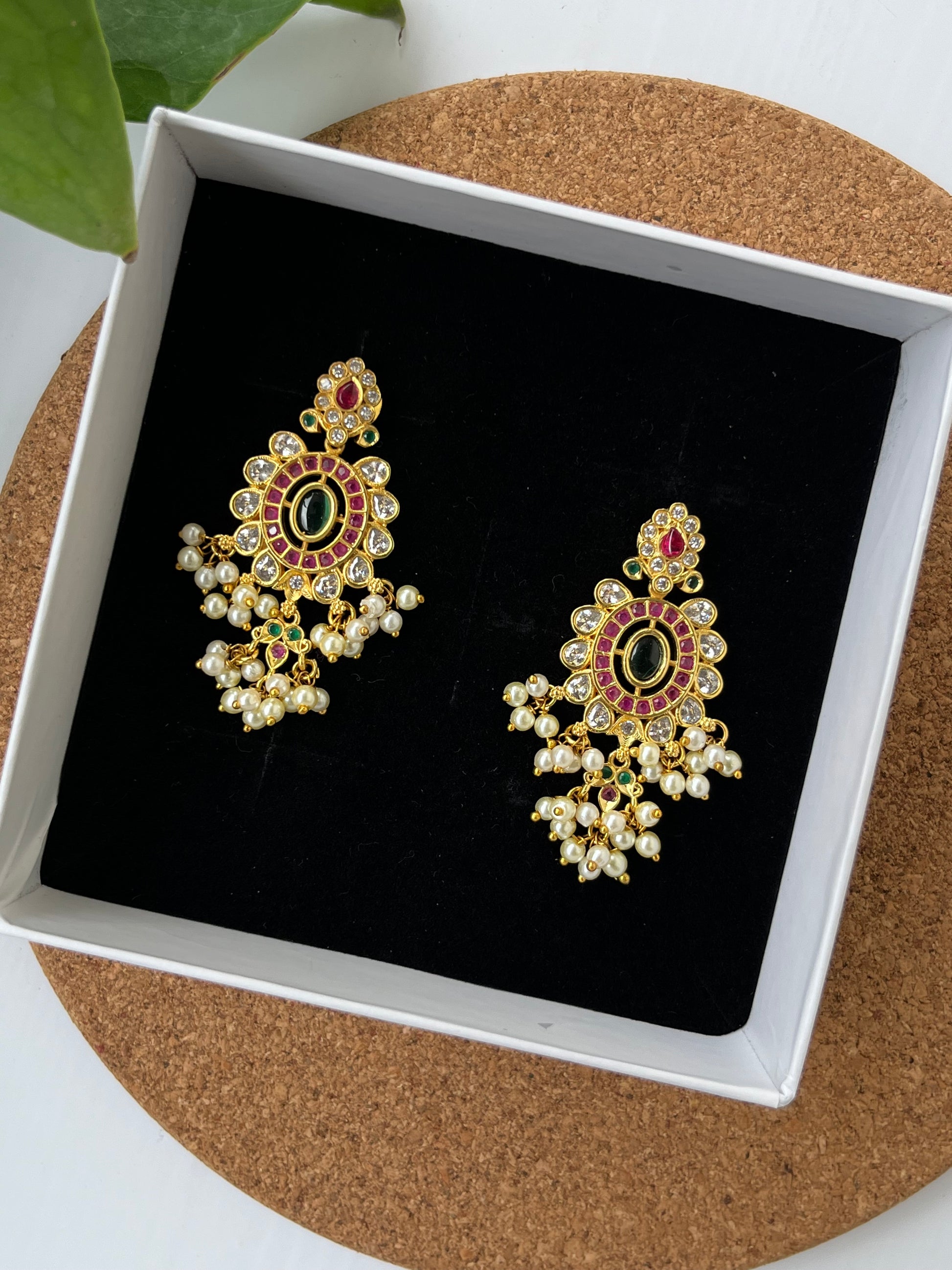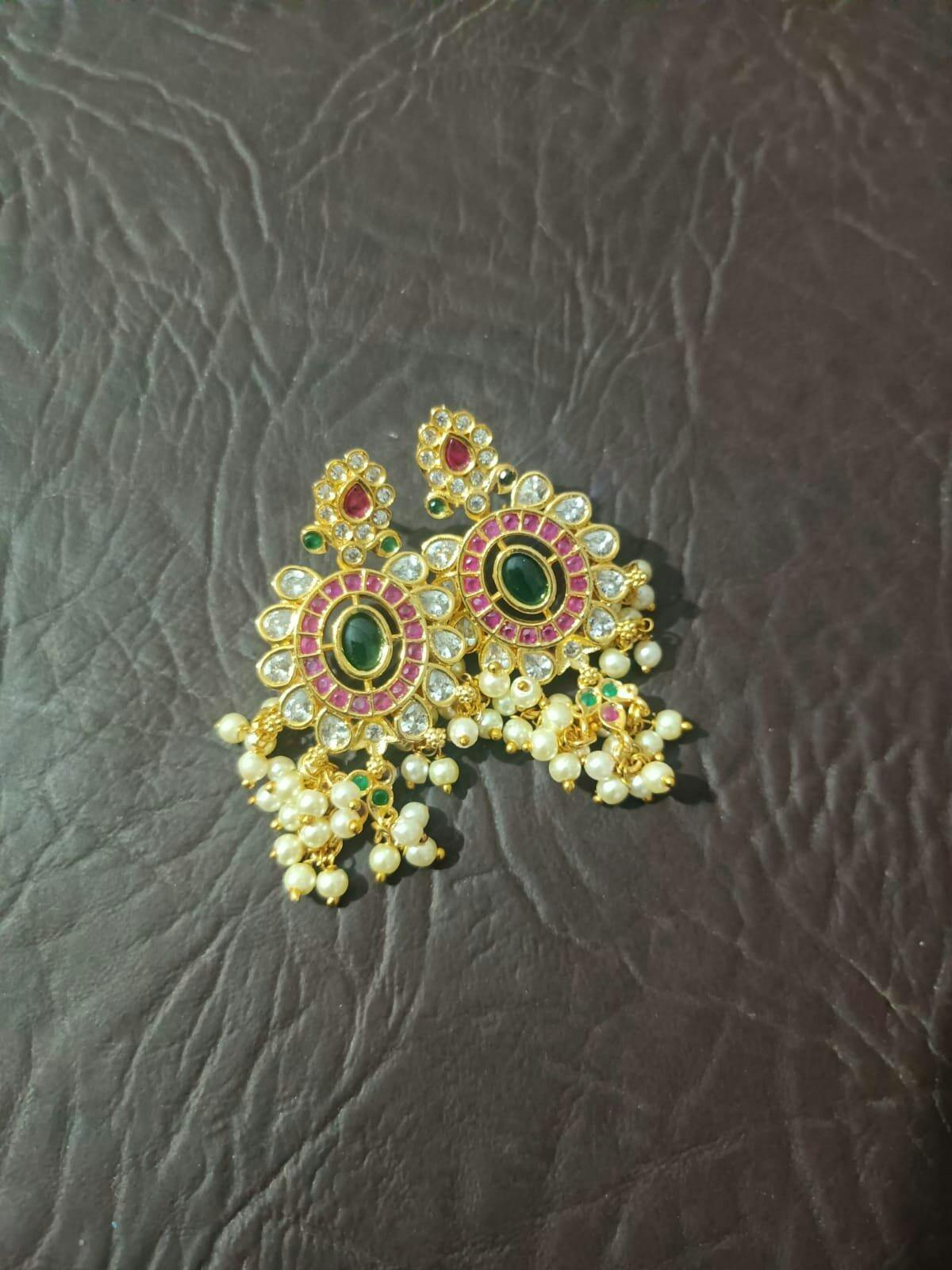 Elevate your ensemble with these Kemp Stone Dangler Earrings, expertly crafted to showcase traditional elegance. Featuring meticulously set Kemp stones, these earrings offer a vibrant yet refined look that complements both ethnic and contemporary styles. Their lightweight design ensures comfortable wear, making them ideal for extended occasions. Perfect for those who appreciate artisanal craftsmanship and timeless beauty.