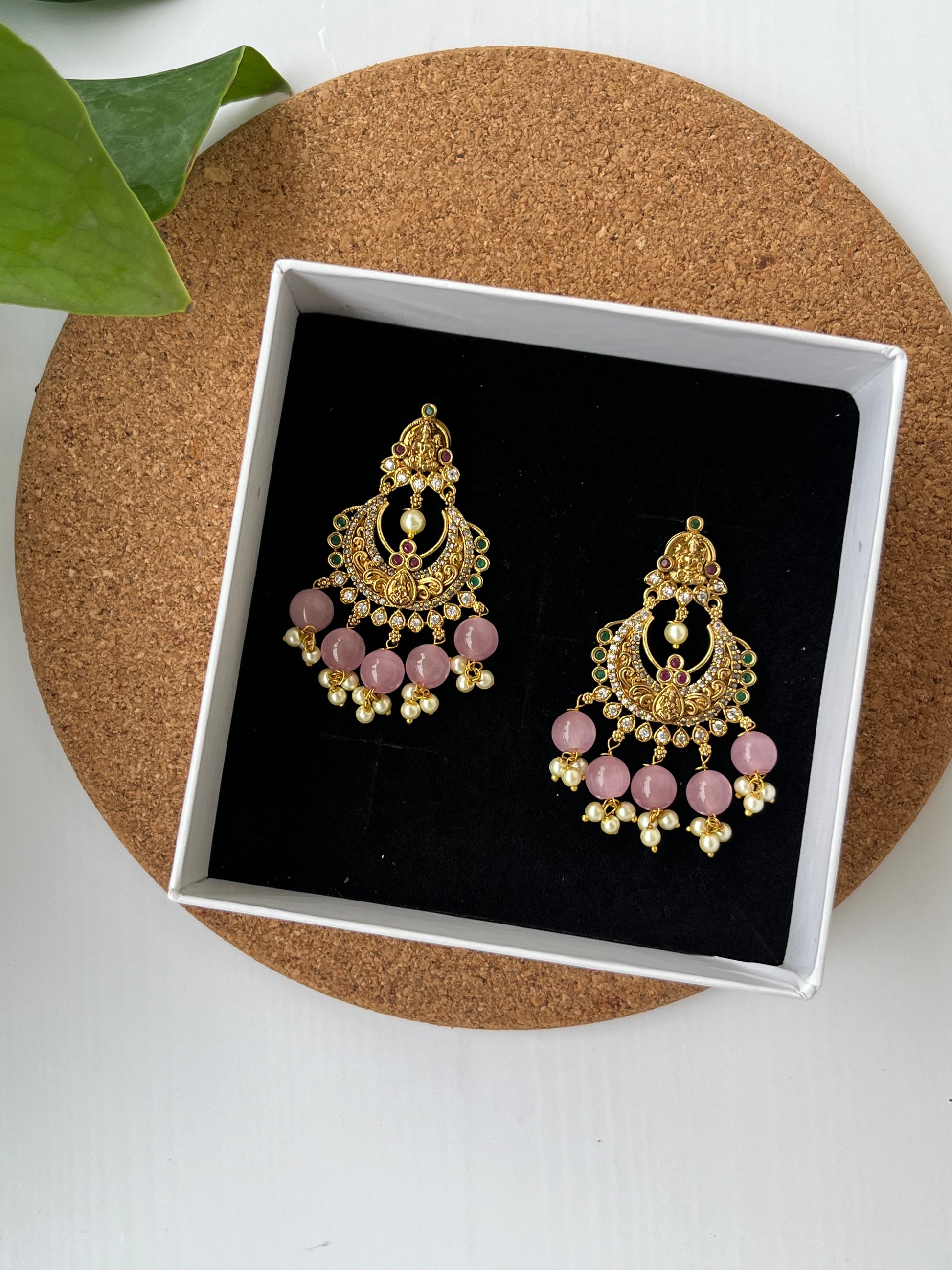Elevate your ensemble with the Lakshmi Devi Chaandbali Earrings, expertly crafted to make a striking statement. Available in two elegant color options—soft pastel pink beads and refreshing mint beads—these earrings blend traditional design with contemporary charm. Their intricate detailing and balanced silhouette ensure they complement both festive and formal attire, offering versatility and timeless appeal. Perfect for those who appreciate refined craftsmanship and subtle color accents.