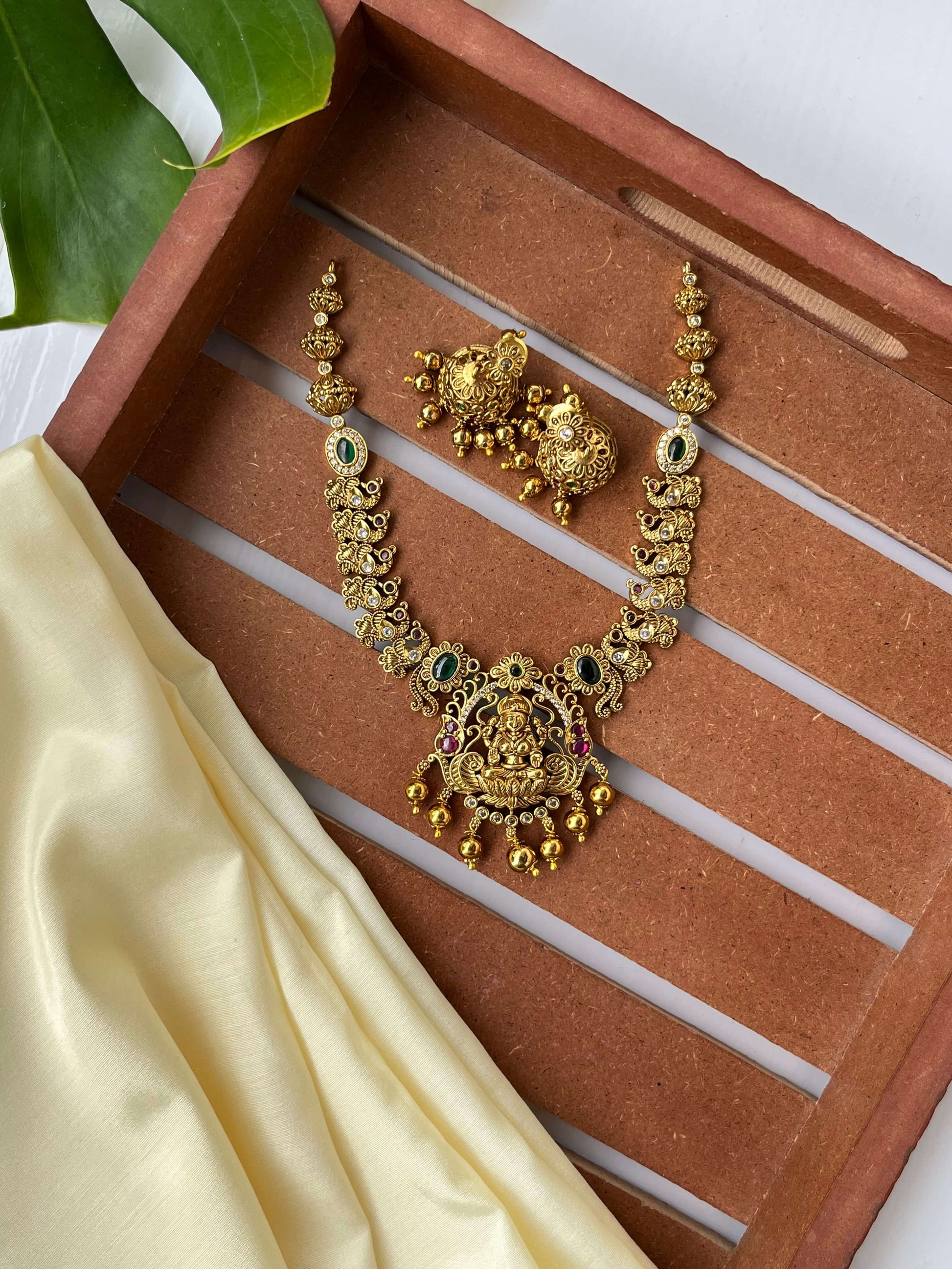 Lakshmi Devi Necklace Set with Jhumkas – Traditional South Indian Jewelry