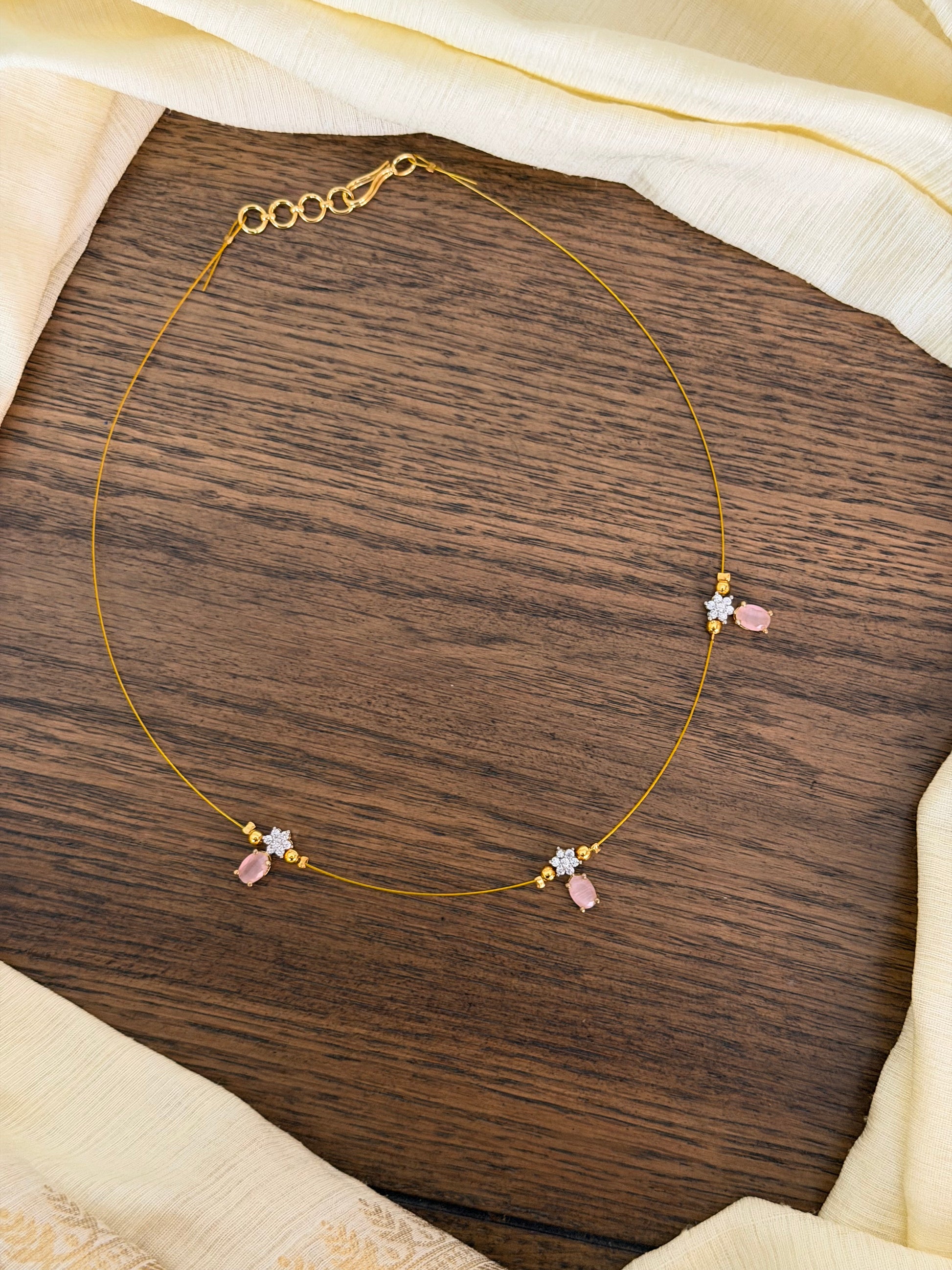 • Design: The necklace features a very fine, almost undetectable single-line chain (often made of nylon, fiber, or a super-fine gold-toned wire) that minimizes the look of the chain itself, making the pendants appear to float on the skin.