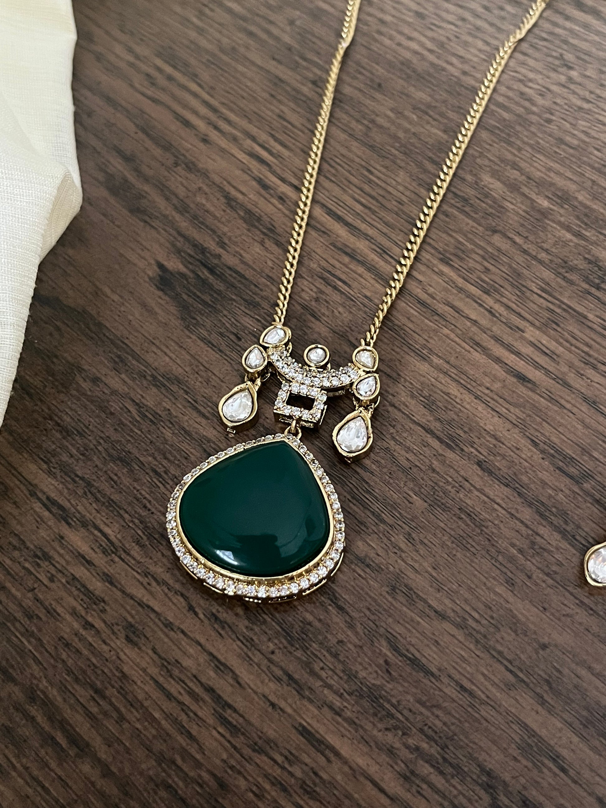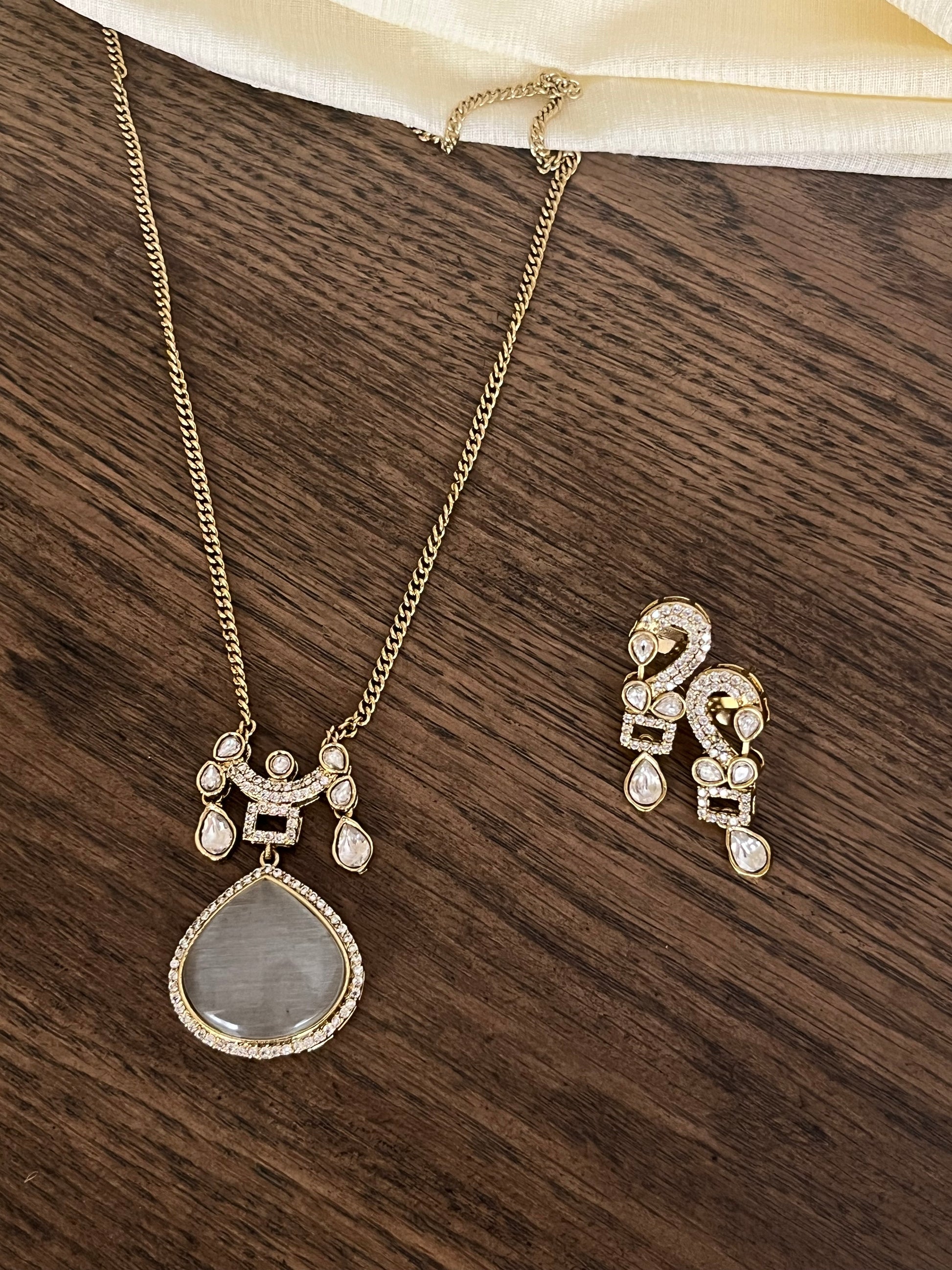 - Statement teardrop pendant design with matching earrings