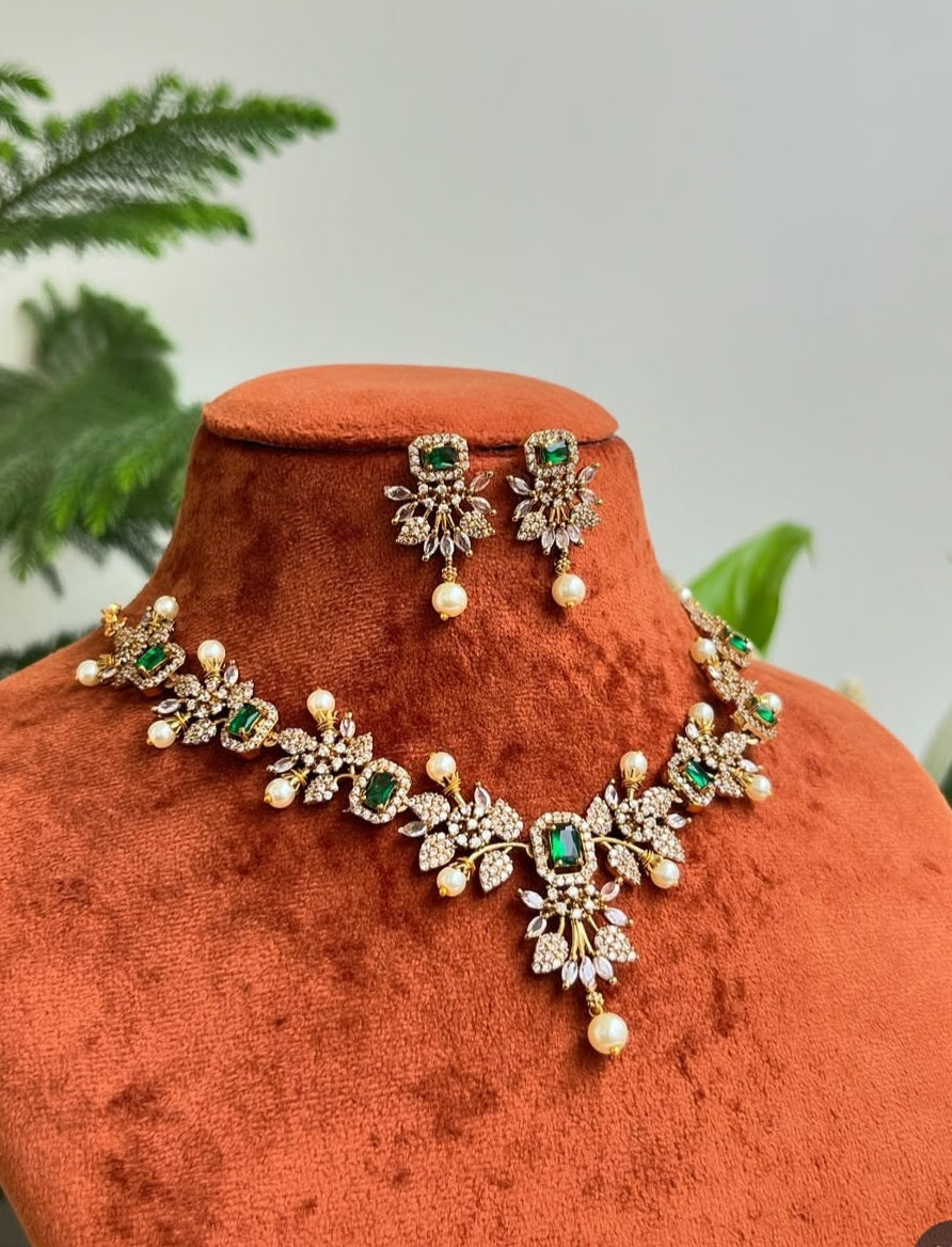 Floral Vine Necklace – Pearl Motifs & AD – Glam Saree / Lehenga Set 12