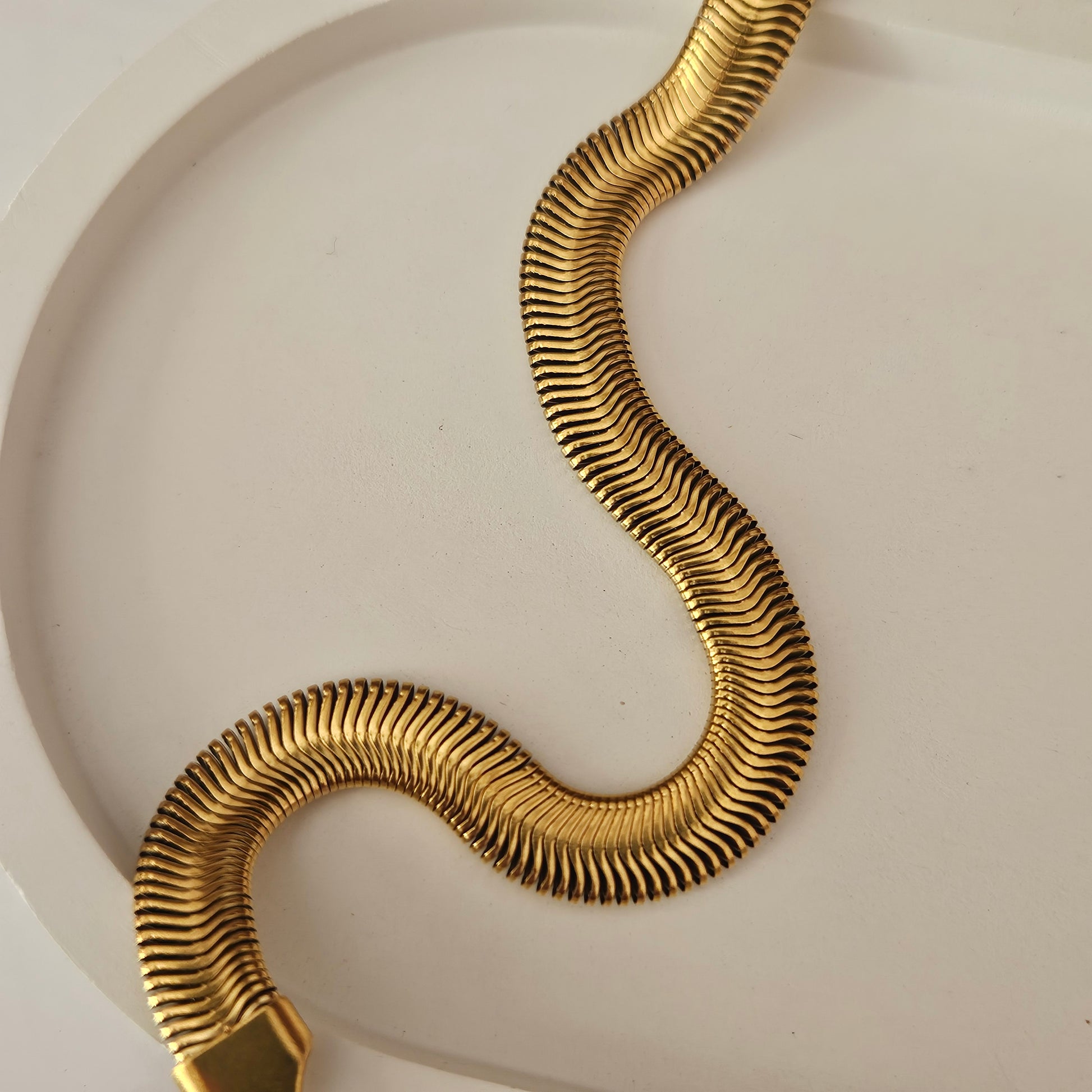 Unleash your inner allure with the Serpent Bracelet. This intriguing bracelet offers a distinctive design, perfect for adding a touch of mystique and elegance to your wrist. Made with anti-tarnish materials for enduring charm.