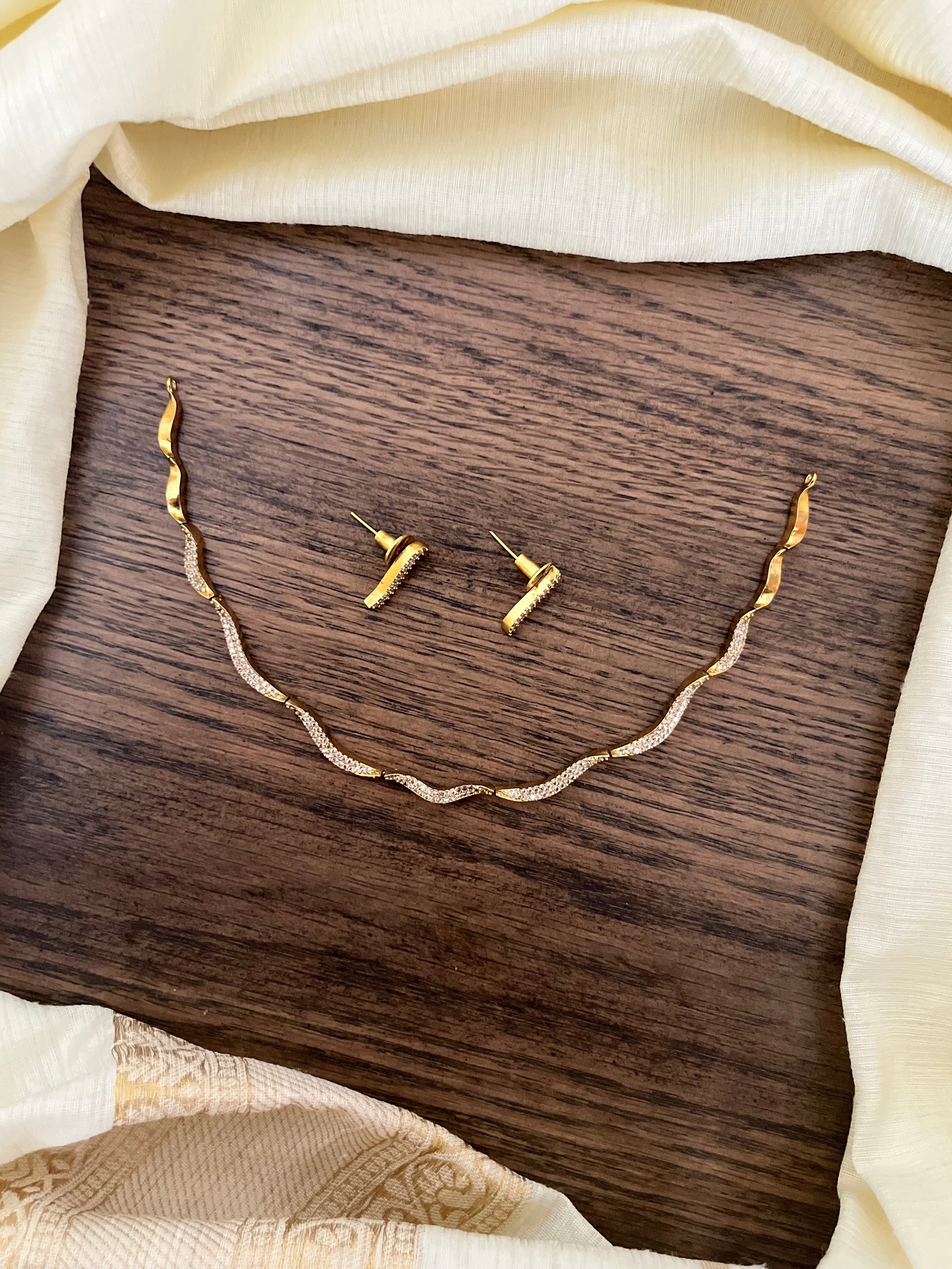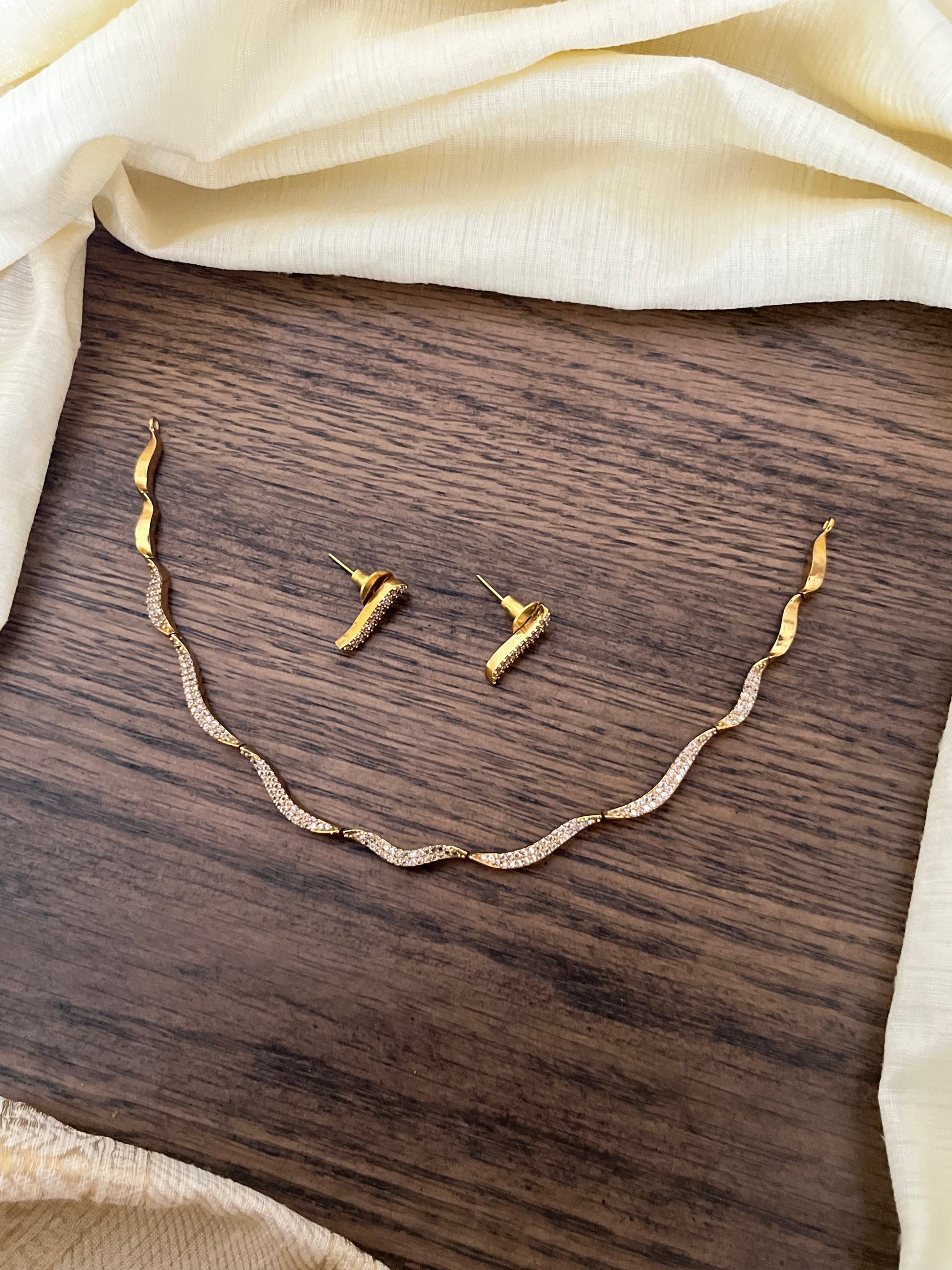 Sleek Wave-Design Gold Plated Necklace with Earrings | Minimalist Daily Wear Jewellery